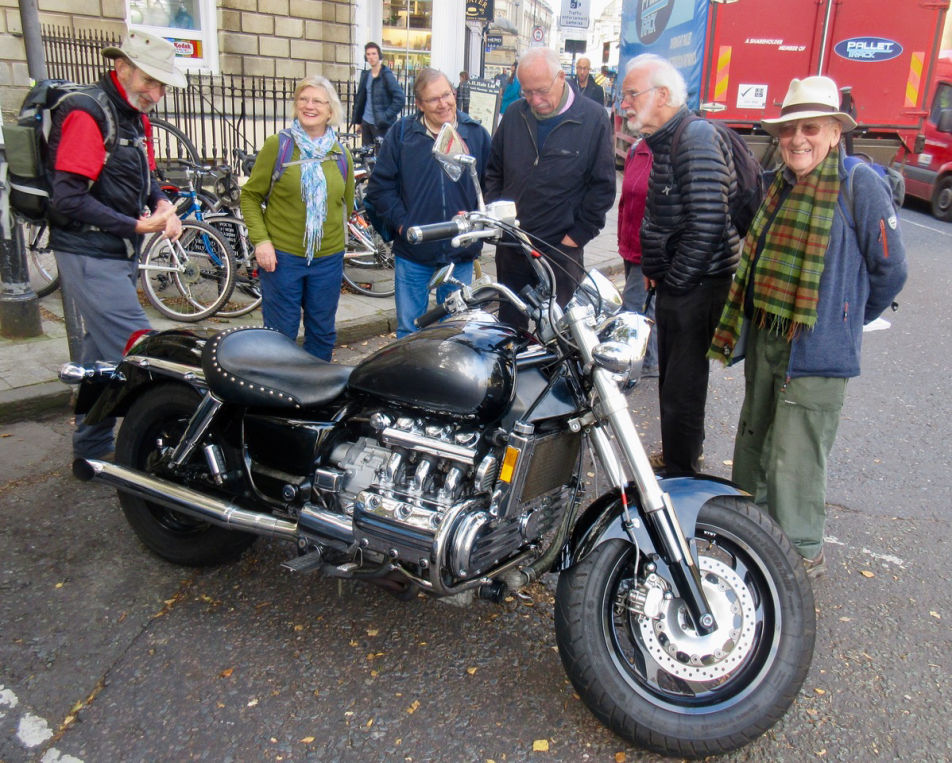 We walked through Bath, stopping to admire the architecture, the golden-brown trees and in general the beauty of the whole scene. Our leader read from the guide leaflet and the group gathered round in awe, or was it to keep out of the cold? There was a sharp wind when out of the sunshine.