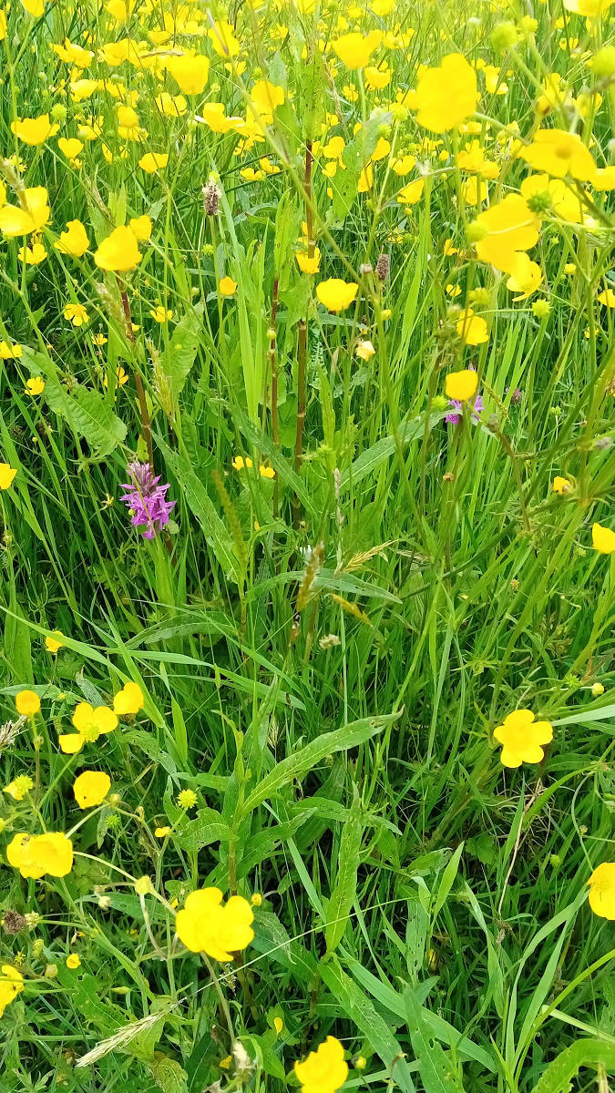 We reduced the length a little by starting from Tickenham Church and walked across buttercup- rich meadows with the occasional orchid. We soon reached the foot of the Cadbury Camp hill with a sharp incline of 330ft, 100m. The views at the top, across the Gordano valley and moor to Clevedon, are worth the climb.