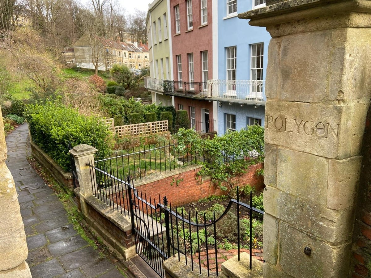 Proceeding along North Road we enjoyed good views of Avon Gorge and across to the Clifton Observatory. Having crossed the Clifton Suspension Bridge our route took us past Clifton Rocks Railway which had linked Clifton to Hotwells from 1893 till its closure in 1934. During WW2 it was used as a secret transmission base by the BBC . We then paused to look at the distinctive Grade 2 listed Georgian houses in the Paragon. Built with Bath stone between 1809-1814 each front door being curved and of a different colour to the others.