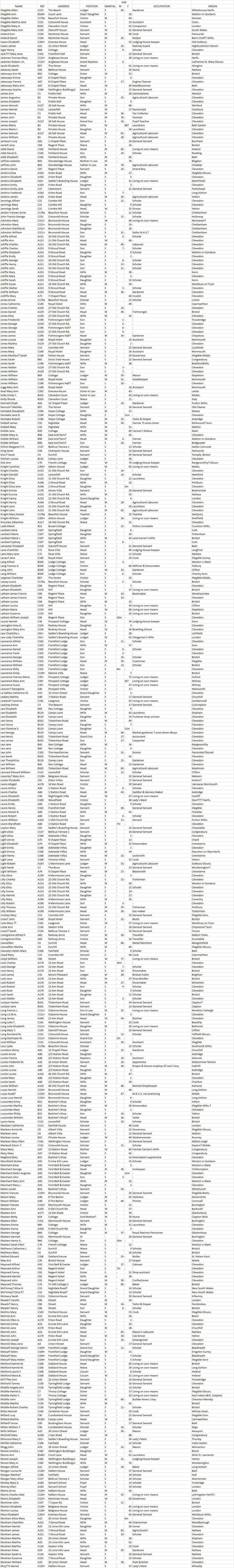 1861 Census Records, alphabetical, Surnames I to M