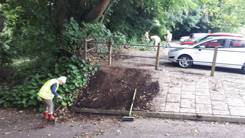 Luckily there were not many cars so we were able to trim a lot of overhanging branches. We also cleared the edges, removing an area of dumped tarmacadam, making it a lot easier to park.